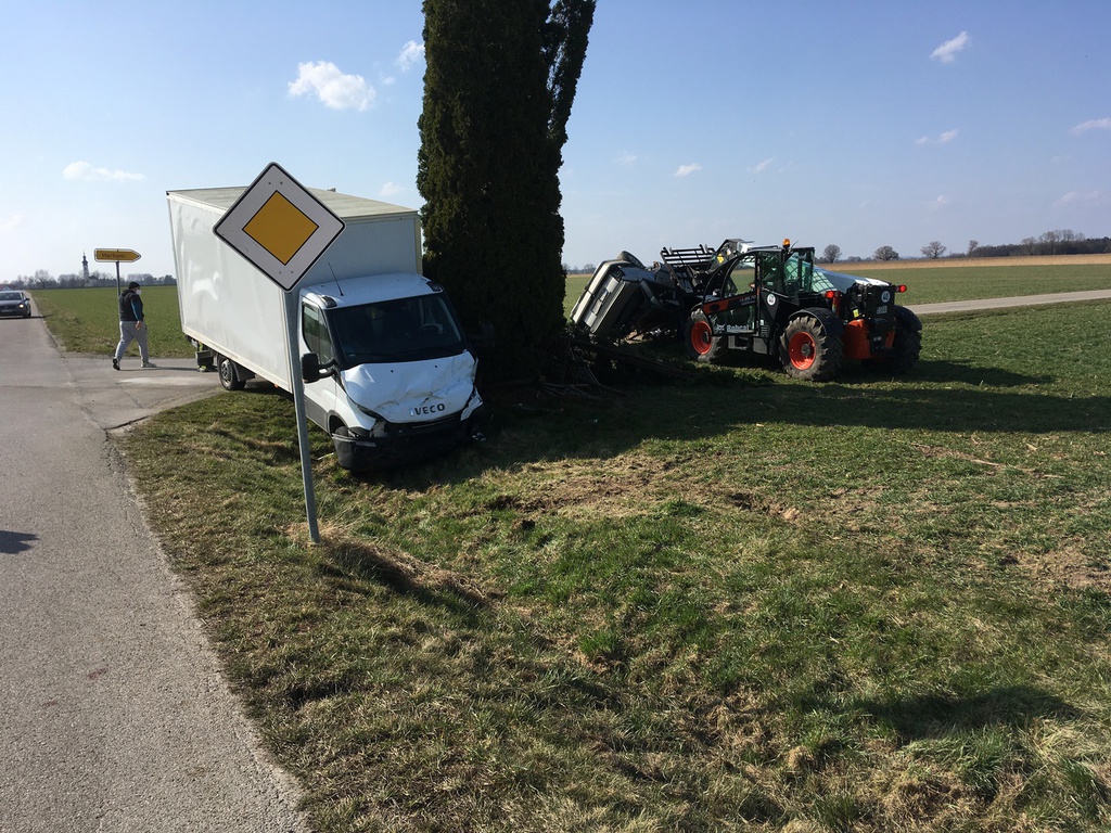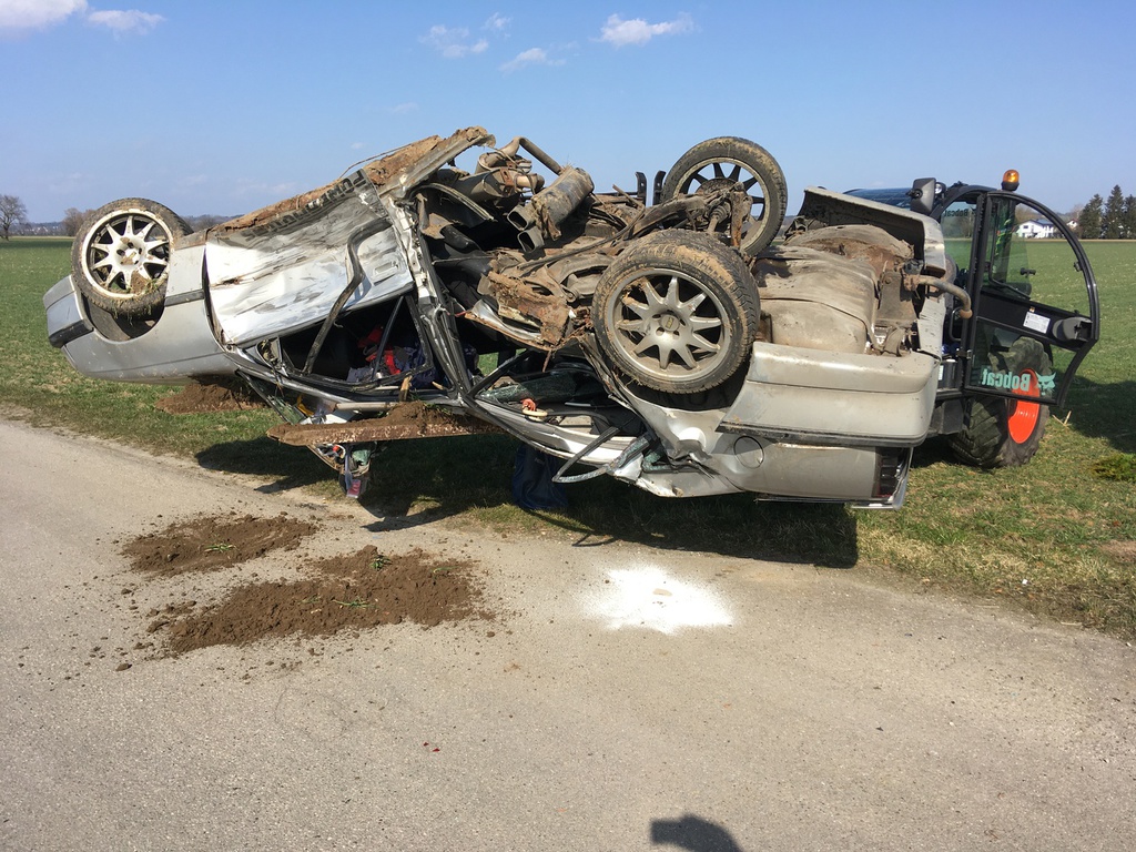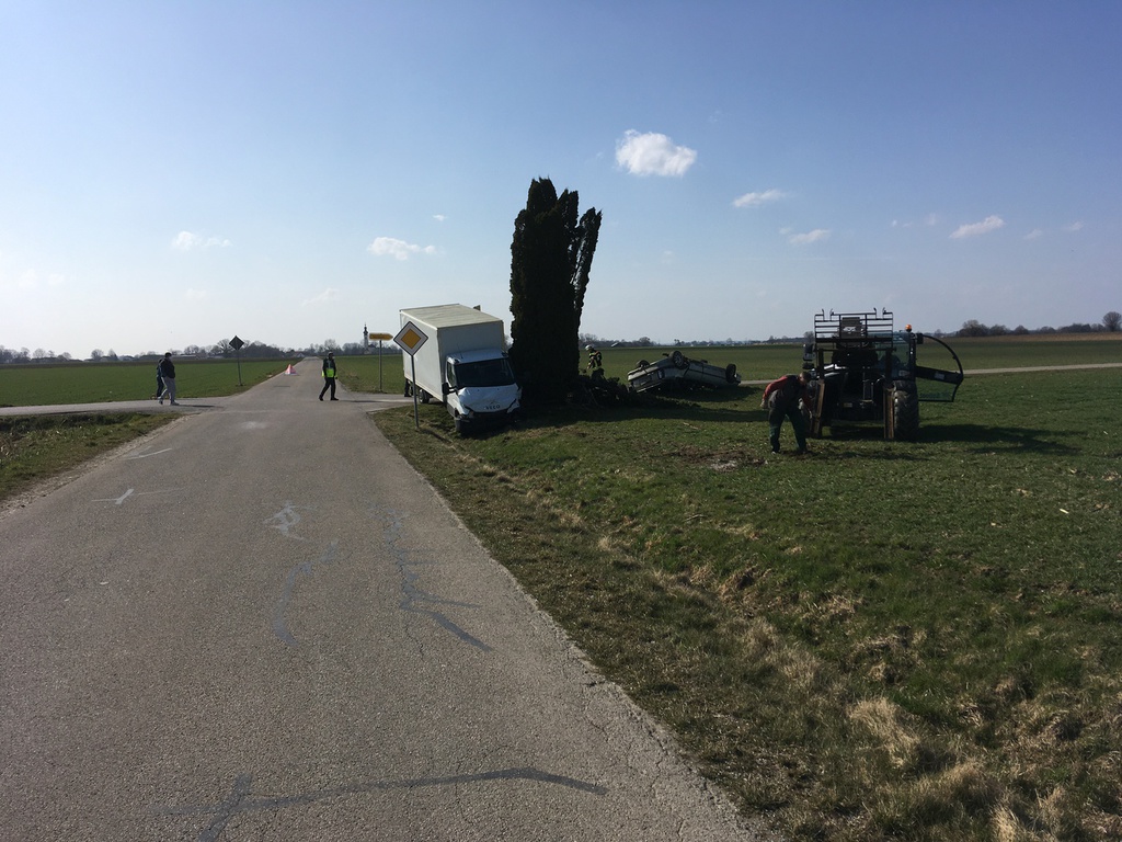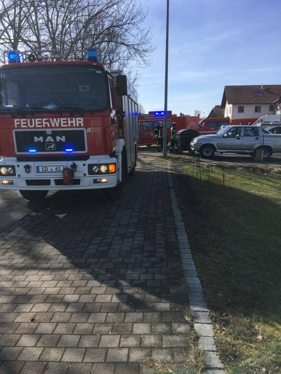 An der Kreuzung der Verbindungsstraßen von Reichenkirchen nach Lohkirchen und der von der St. 2082 nach Harham fuhr ein Transporter einem PKW in die Seite. Der PKW überschlug sich und kam im angrenzenden Feld auf dem Dach zum liegen. Der Transporter kam in einem Entwässerungsgraben zum stehen. Der PKW-Fahrer konnte sich selbst befreien und wurde schwer verletzt. Die beiden Insassen des Transporters konnten das Fahrzeug ebenfalls selbstständig verlassen und wurden leicht verletzt. Wir sicherten die Unfallstelle ab, stellten den Brandschutz sicher, betreuten die Beteiligten bis zum Eintreffen des Rettungsdienstes, banden auslaufende Betriebsstoffe und halfen bei der Bergung des PKW aus dem Feld. |