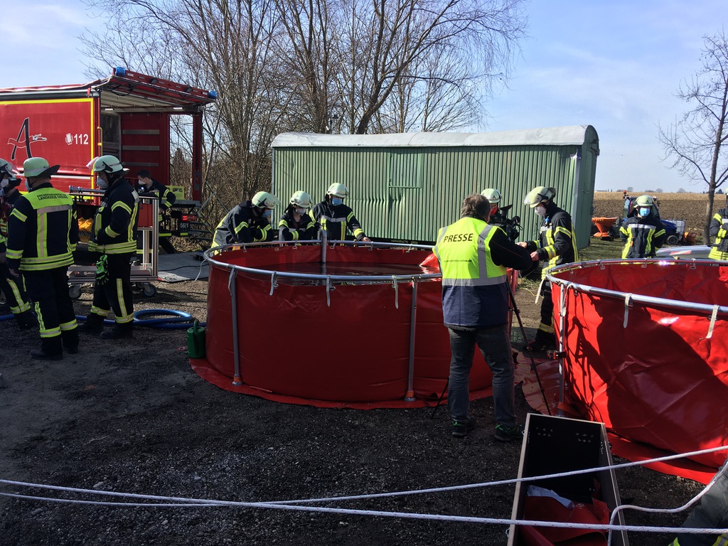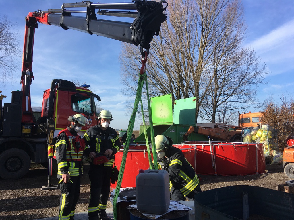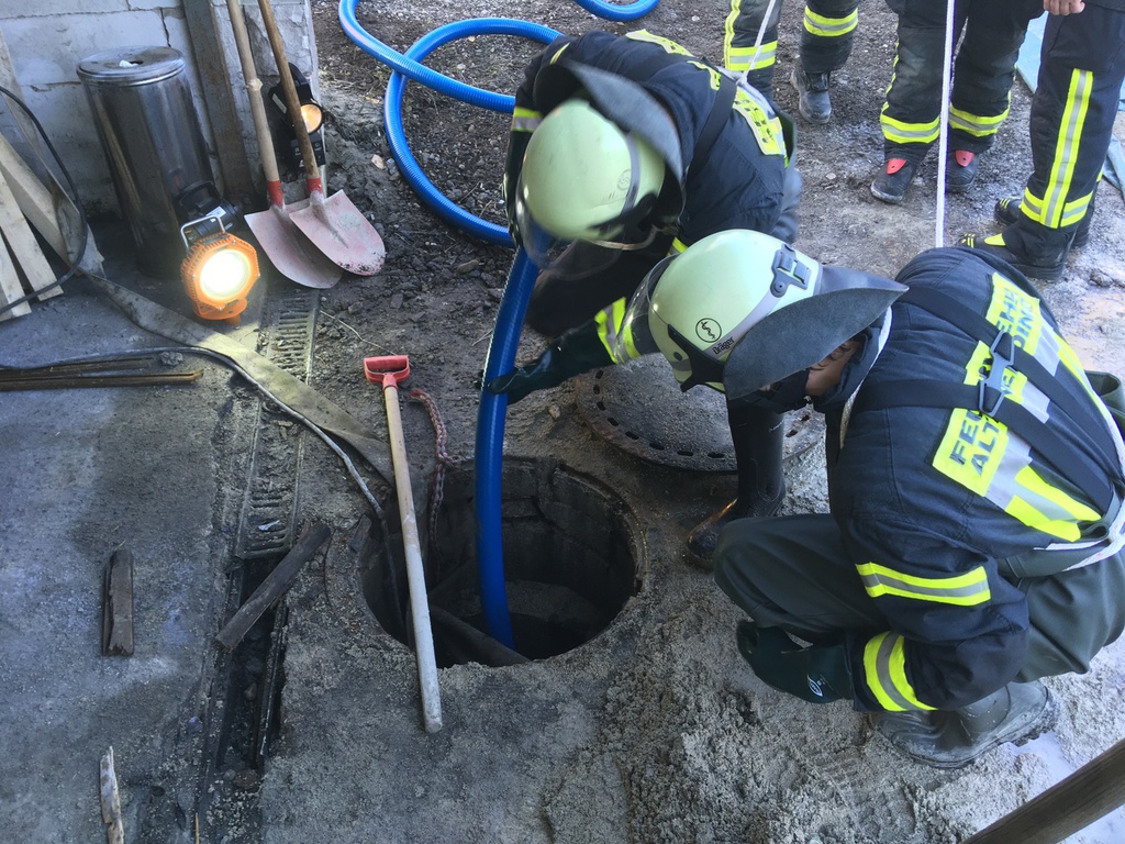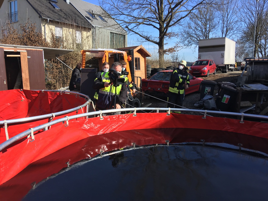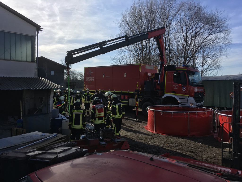 Auf einer Betonfläche wurde eine ca. 10-20 qm große Verunreinigung mit Öl festgestellt. Ein Schacht im Bereich der Betonfläche wurde geöffnet. Darin befand sich ein Öl - Wassergemisch. Aus dem Schacht wurden von der FF Altenerding ca. 7 cbm Öl - Wassergemisch in Auffangbecken gepumpt. Die in dem Bereich gelagerten Behältnisse wurden in ein aus Folie hergestellten Auffangbereich zwischengelagert und später von einer Entsorgungsfirma abgeholt. Das Öl auf der Betonfläche wurde mit Ölbindemittel aufgenommen und ebenfalls durch die Entsorgungsfirma beseitigt. Auch das Öl - Wassergemisch wurde aus den Auffangbehältern von einem Entsorgungsbetrieb abgepumpt. |