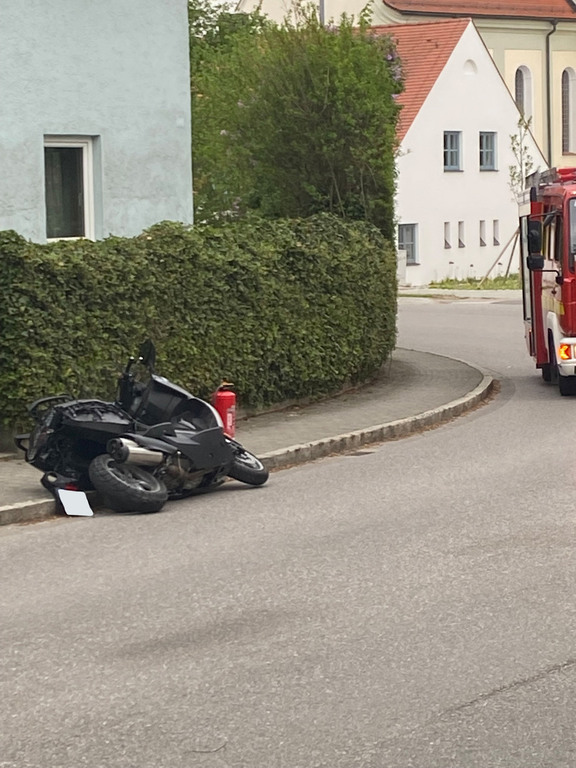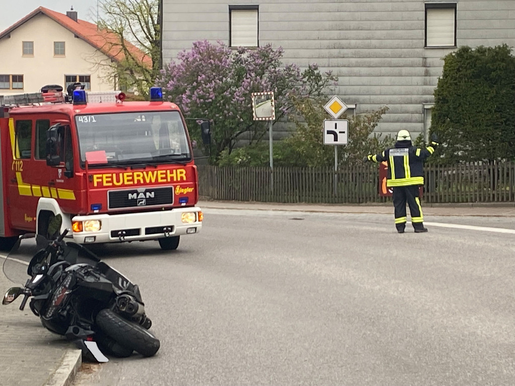 Ein PKW fuhr einem vor ihm fahrenden Motorrad auf. Der Fahrer stürzte und verletzte sich. Wir sicherten die Unfallstelle ab und regelten den Verkehr. |