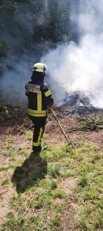 | Lagebeschreibung: | Wir wurden auf eine unklare Rauchentwicklung südlich von Tittenkofen alarmiert. Über einem Waldstück konnten wir schließlich eine Rauchsäule entdecken. Es stellte sich heraus, dass hier Reisig verbrannt wurde. Wir zogen das Brandgut auseinander und löschten es ab. | |